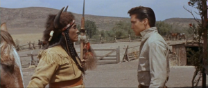 Le long-métrage débute sur une note positive : une soirée de liesse en petit comité où Elvis pousse la chansonnette, tout le monde danse, on se croirait chez John Ford et pour cause un mariage se profile à l’horizon et l’atmosphère de cette famille recomposée (un mariage mixte blanc-Amérindien de secondes noces dont est issu Pacer, le personnage joué par Presley) est au beau fixe. Le demi-frère de Pacer, Clint (issu donc du premier mariage de leur père) semble proche de Pacer et vice-versa… Bref tout va bien jusqu’à ce que la tribu des Kiowas, une fois que tout le monde est rentré chez soi, attaque une propriété blanche du coin et massacre ses propriétaires. Les Blancs du coin organisent alors les représailles et poussent la famille de Pacer, mixte donc, à choisir un camp, ce que la famille se refuse à faire mais l’engrenage de violence sera impossible à éviter, même entre les deux demi-frères… Les Rôdeurs de la Plaine mérite l’intérêt par sa posture éminemment progressiste : la sensibilité de Siegel penche, et ce ne sera pas une surprise, du côté des Amérindiens plusieurs fois présentés comme légitimes dans leur lutte. Toutefois contrairement à l’excellent La vengeance de l’indien, aucun des deux camps – blancs ou « peaux rouges » – n’est placé en totale victime puisqu’ils sont tous deux capables d’injustice, de trahison, de violence contre les innocents. On retrouve là le pessimisme de Don Siegel qui prend tout son sens lors de la séquence finale, d’autant plus puissante que le sort lié est réservé à la star Elvis Presley. A ce titre, il est étonnant de voir